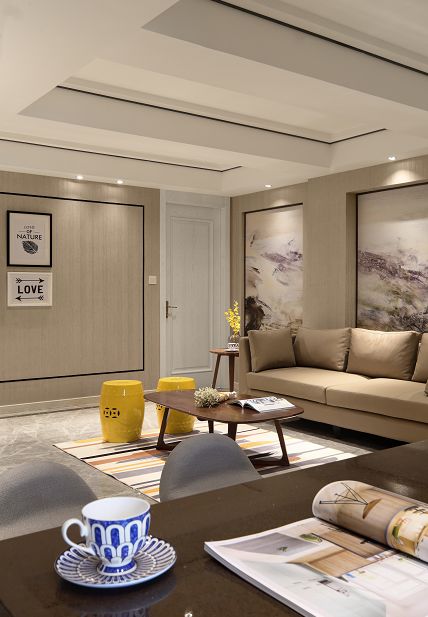 尚。沙发的背景墙装饰的是业主亲自挑选的抽象画作,整个空间流露出一种西方当代艺术气息。